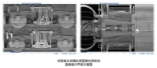 该系统是铁路车辆运行清静监控系统的主要组成部分,,,,使用轨旁装置的高速相机,,,,检测运行客车走行部、转向架、制动部件、车端毗连及车体下部悬吊件等可视部位图像,,,,实时传输至室内监测终端举行剖析,,,,并使用人工检测发明运行车辆异常情形并报警。。。。
